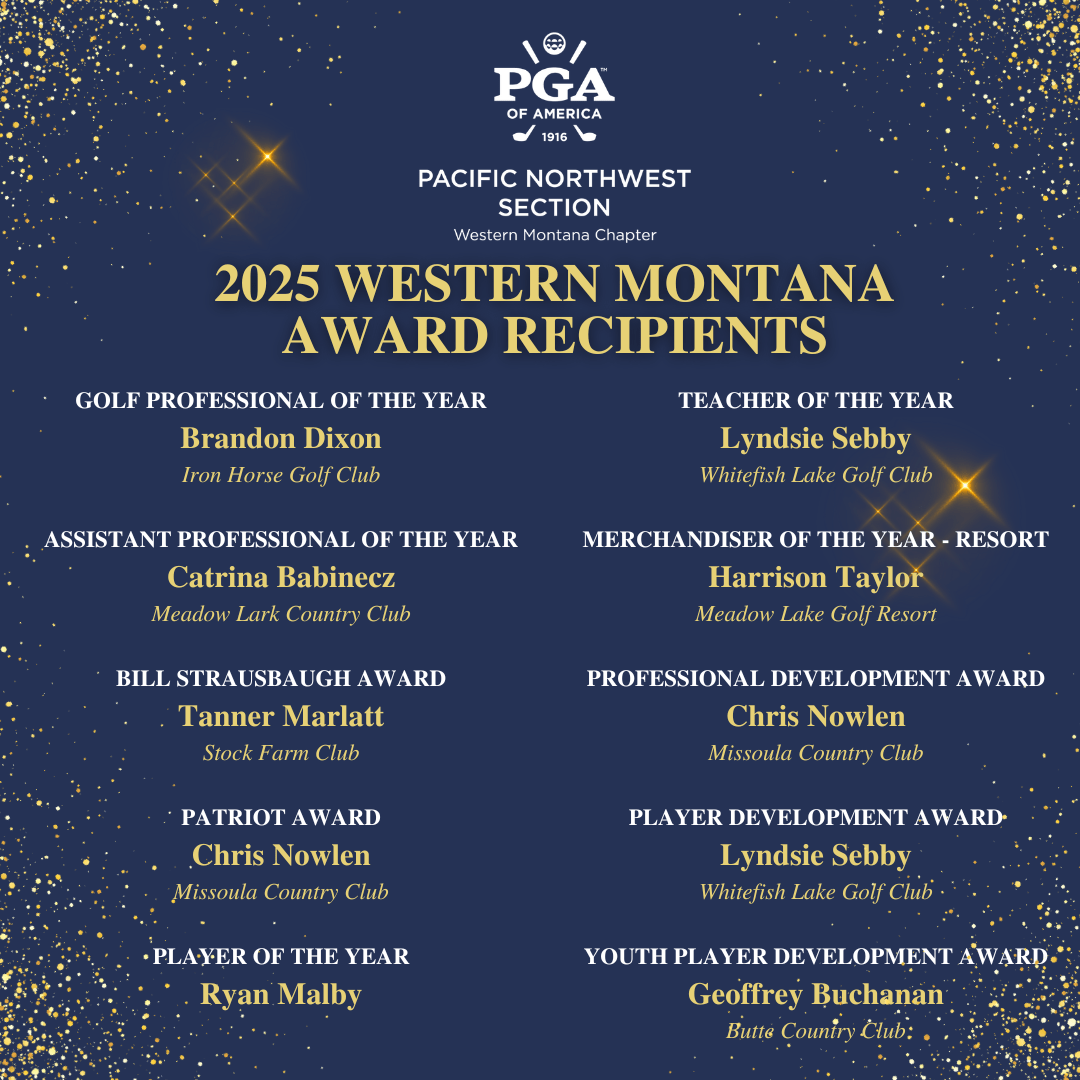 We are proud to announce the 2025 Western Montana Chapter Award Recipients! Congratulations to all of the outstanding PGA Professionals who have been recognized for their achievements.